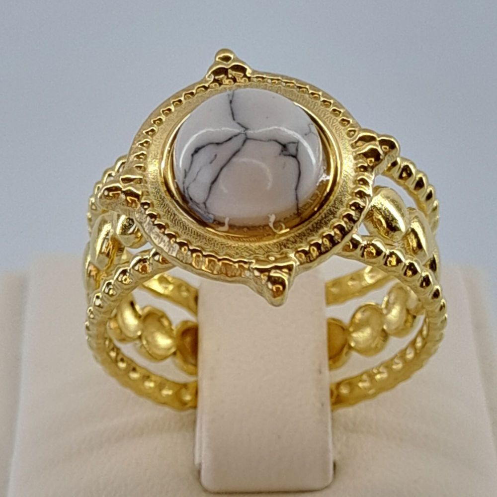 Αυξομειούμενο επίχρυσο ασημένιο 925° μονόπετρο δαχτυλίδι, με πέτρα φίλντισι.