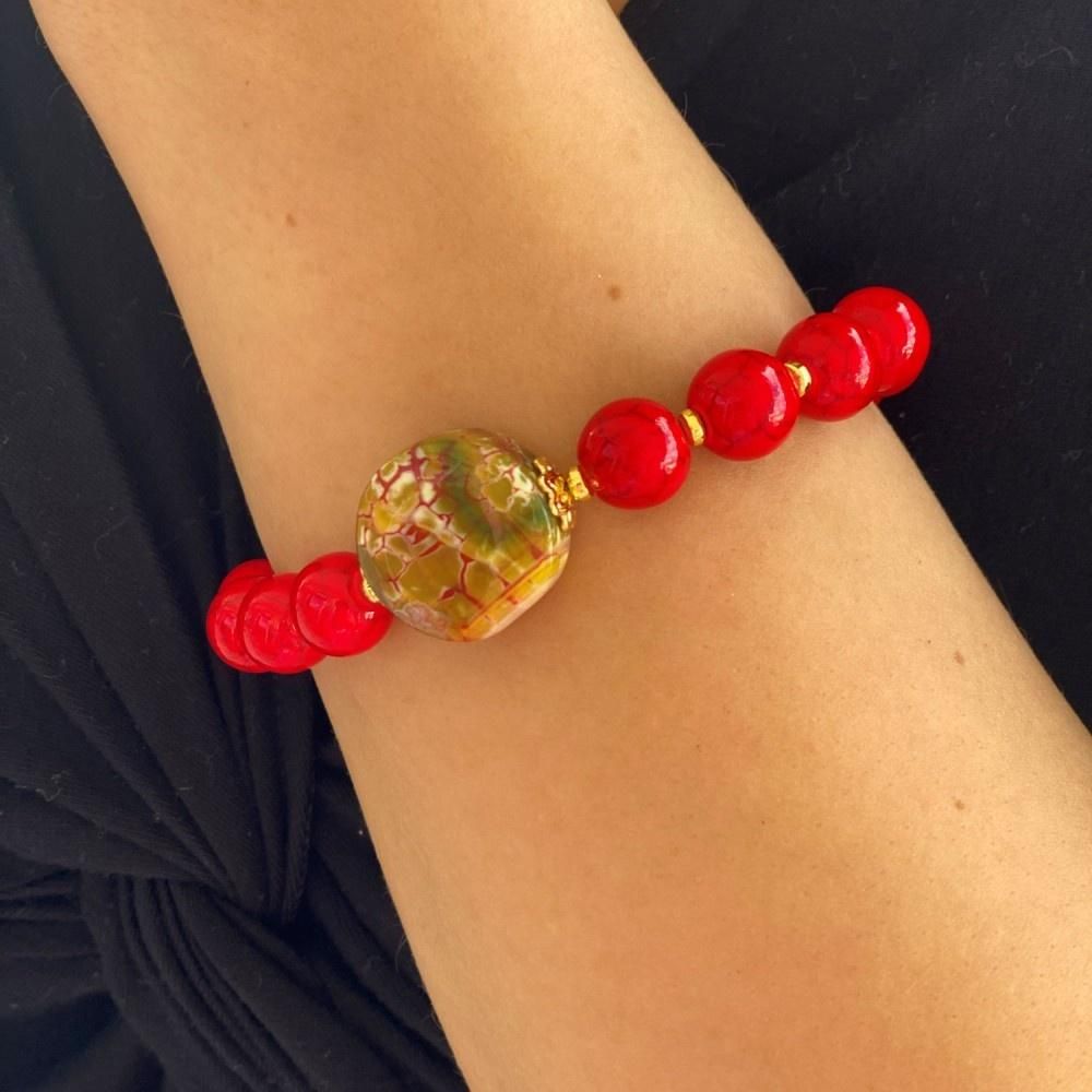 Βραχιόλι με επίχρυση 24 καρατιών καρδιά με μάτι από σμάλτο και ροδέλες επίχρυσους αιματίτες.