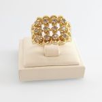 Ασημένιο 925° και επιχρυσωμένο δαχτυλίδι. Η επιφάνεια του είναι σαγρέ και στην μπροστινή πλευρά του διακοσμείται από 3 σειρές ζιργκόν. Υπέροχο και εντυπωσιακό δαχτυλίδι. Μέγεθος 19.