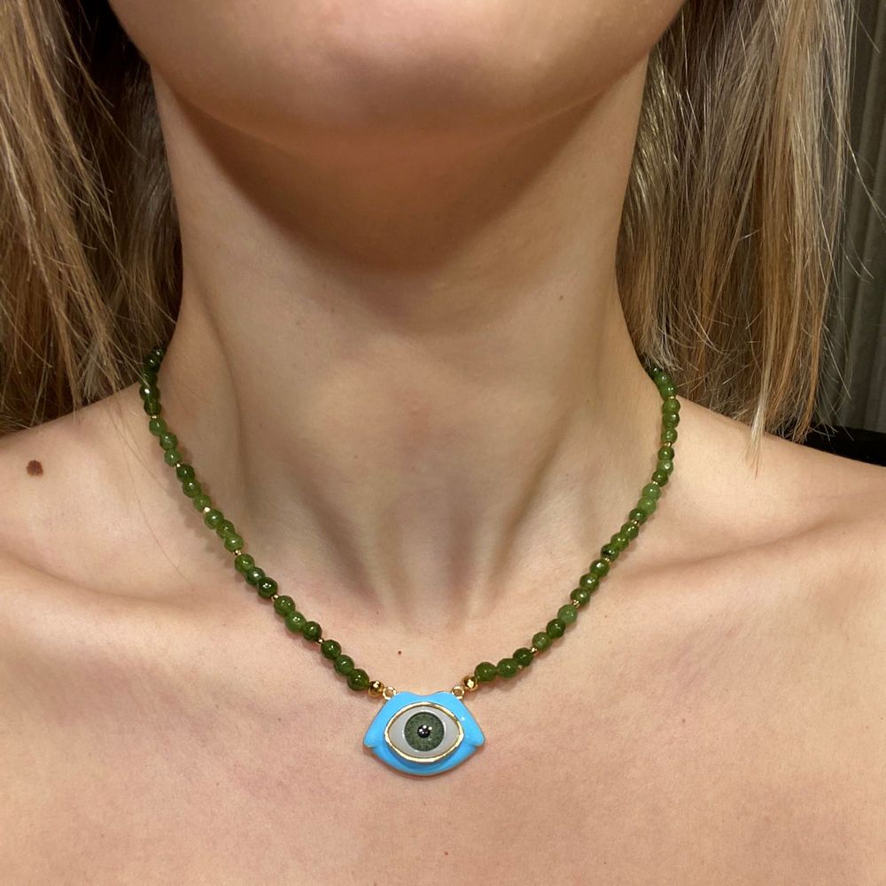 Κολιέ με ημιπολύτιμες πέτρες όνυχα και μονόγραμμα ατσάλινο επισμαλτωμένο με μάτι και ζιργκόν.