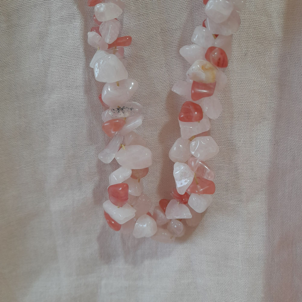 Ρομαντικό κολιέ σε αποχρώσεις του ροζ. Κολιέ φτιαγμένο από τσιπς τουρμαλίνες, πλεγμένες μεταξύ τους δίδοντας ένα υπέροχο αποτέλεσμα. Μπορεί να φορεθεί από το πρωί έως το βράδυ εντυπωσιάζοντας διακριτικά. Ασημένιο 925 κούμπωμα. Μήκος 60 εκ.